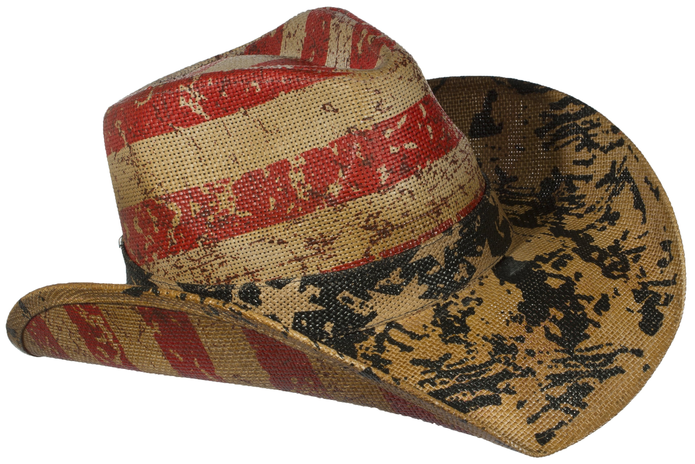 Tan Western Toyo Straw Distressed Usa Flag Cowboy Hat W Elastic Headband Walmart Com